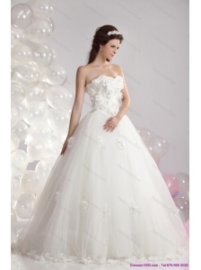 Romantic A Line Strapless 2015 New Wedding Dresses with Chapel Train