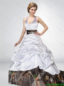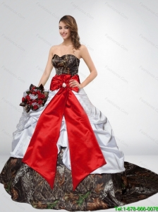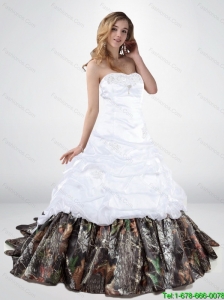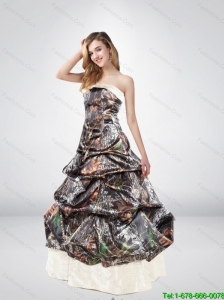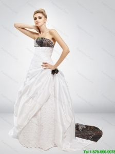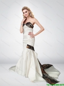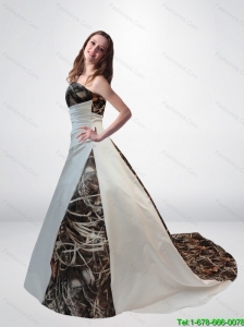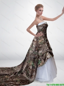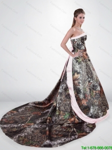 2015 Strapless Court Train Camo Wedding Dresses with Ruching