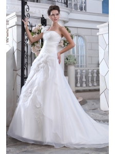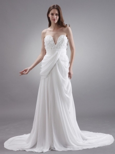 Sweetheart Wedding Dress With Hand Made Flowers Court Train Chiffon