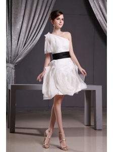 Custom Made Short Wedding Dress With Belt Mini-length One Shoulder