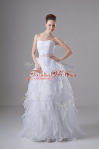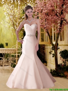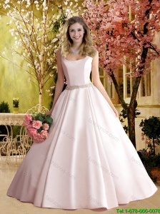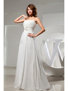 Simple Wedding Dress With Beaded Decorate Waist and Ruch Bodice