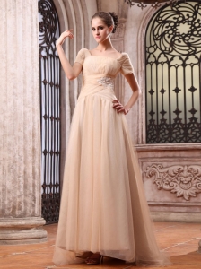 Champagne Wedding Dress With Appliques Square Brush Train Short Sleeves