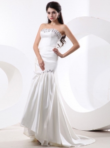 Low Cost Mermaid Strapless Wedding Dress Court Train Satin Hand Made Flower