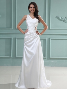 One Shoulder Wedding Dress With Brush Train Beaded For Custom Made