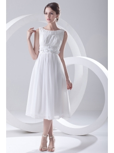 2014 Cheap Empire Scoop Tea-length Appliques Chiffon Wedding Dress