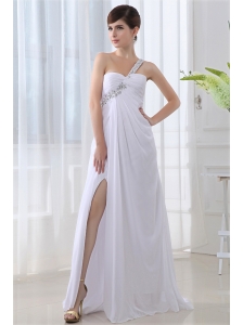 Empire One Shoulder Chiffon Ruching Side Zipper Wedding Dress with Court Train