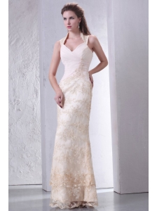 Beautiful Halter Top Column Lace Wedding Dress Floor-length