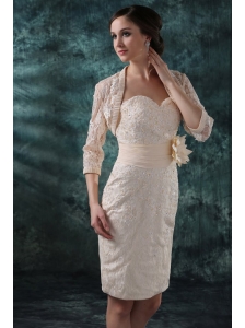 Champagne Column Sweetheart Knee-length Wedding Dress with Flowers