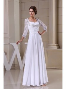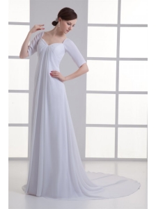 Empire Square Half Sleeves Chiffon Court Train Wedding Dress