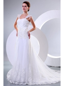 Wide Straps Empire Appliques Decorate Court Train Wedding Dress