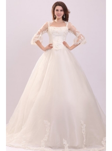 A-line Strapless Appliques Wedding Dress with 3/4 Length Sleeves