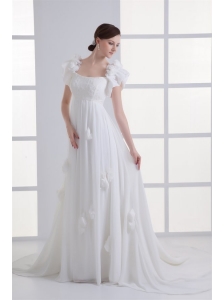 Beautiful Empire Square Court Train Wedding Dress with Flowers