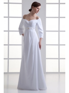 Empire Off The Shoulder Long Sleeves Floor-length Beading Wedding Dress