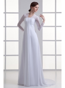 Empire Square Long Sleeves Brush Train Chiffon Wedding Dress
