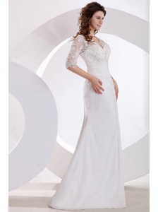 V-neck Column Appliques Long Wedding Dress with Half Sleeves