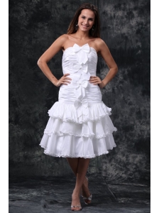 A-line Strapless Ruching Taffeta Knee-length Wedding Dress