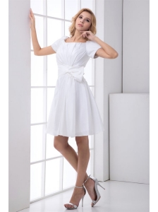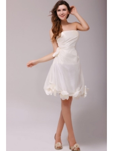 A-Line Strapless Knee-length Bowknot and Ruching Taffeta Wedding Dress