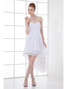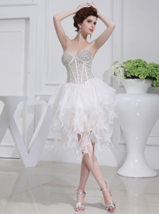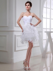 2014Beautiful A-line Sweetheart Organza Ruching Ruffles White Short Wedding Dress