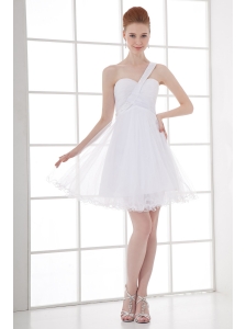 Column One Shoulder Ruching Mini-length Wedding Dress