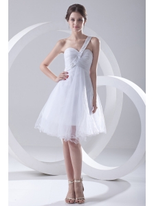 2014 Simple A-line One Shoulder Tulle Ruching Beading Short Wedding Dress