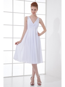 2014 Spring A-line V-neck Knee-length Chiffon Wedding Dress with Ruching