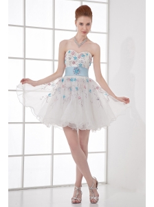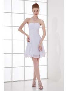 Discount A-line Sweetheart Tulle Appliques White Wedding Dress with Knee-length