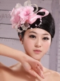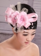 Wedding Party Pink Big Flower Pearls Chiffon and Tulle Headdress Bride