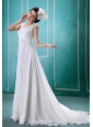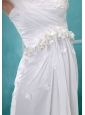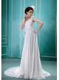 Wentzville Hand Made Flowers Decorate Bidice Straps Brush Train Chiffon 2013 Wedding Dress