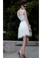 White A-line Bateau Mini-length Organza Lace Beading Prom / Homecoming Dress