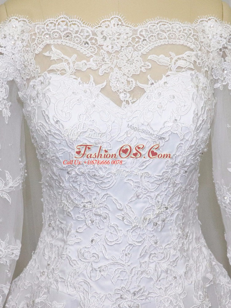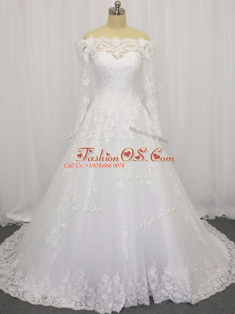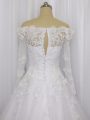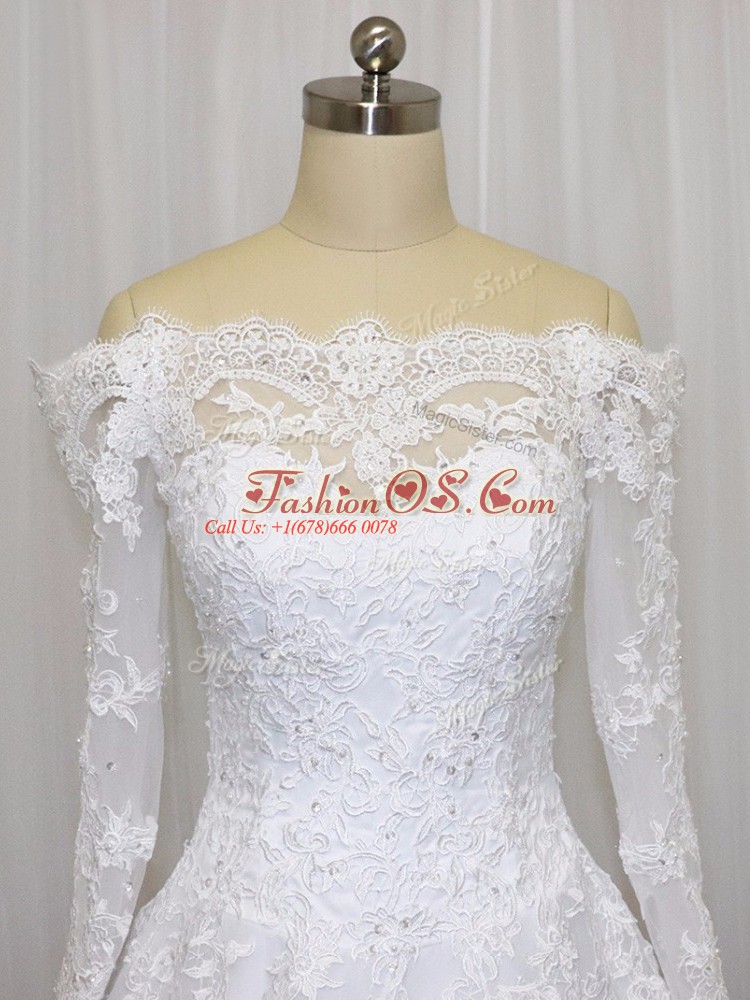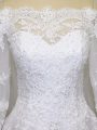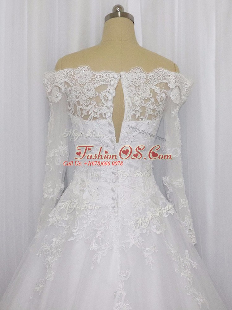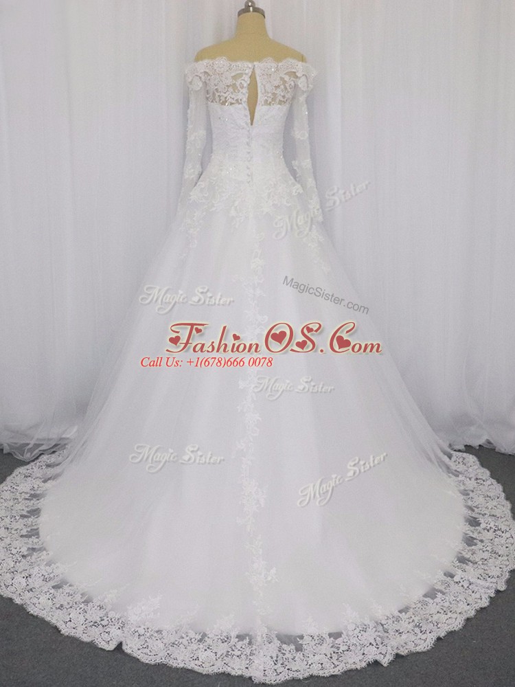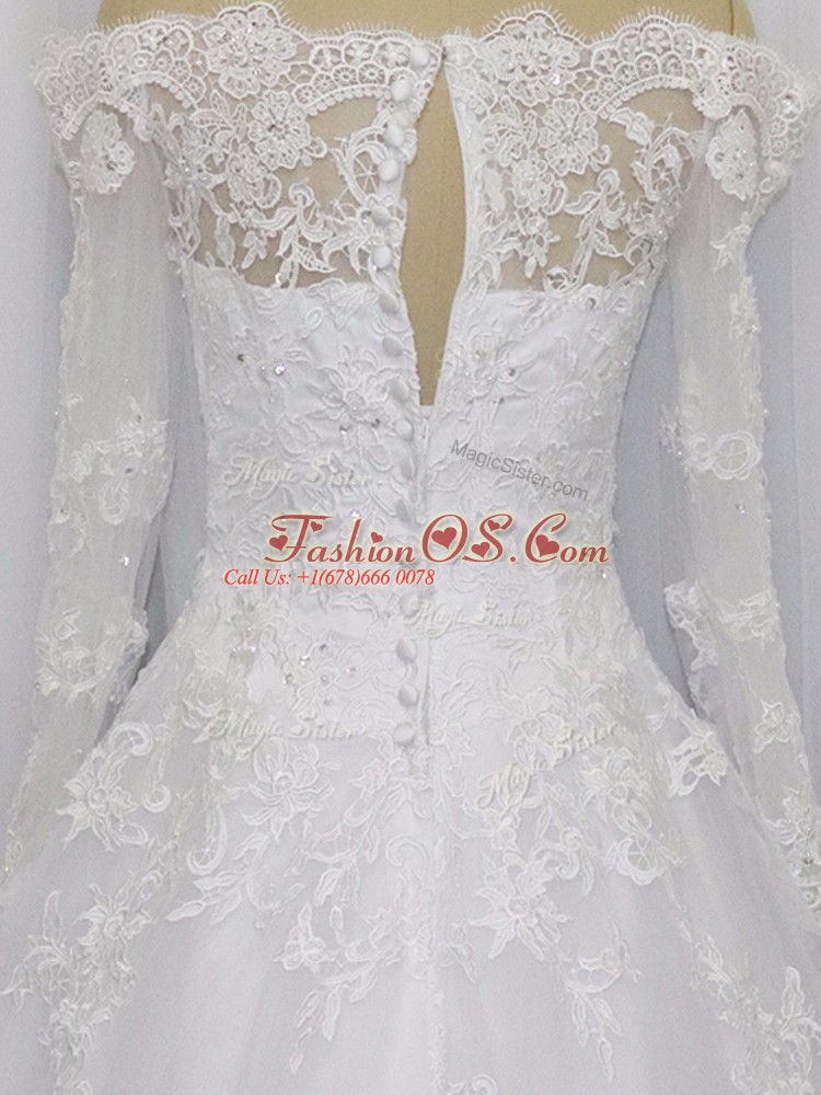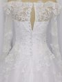 White A-line Beading and Lace Wedding Dress Clasp Handle Tulle Long Sleeves
