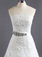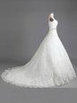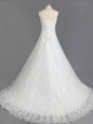White A-line Beading and Lace Wedding Dress Lace Up Lace Sleeveless With Train