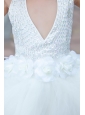 White A-line Halter Ankle-length Flower Girl Dress Taffeta and Tulle Beading and Hand Made Flowers