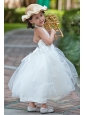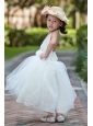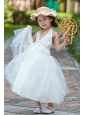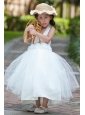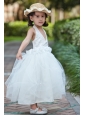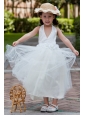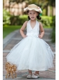 Home >  Flower Girl Dresses > White A-line Halter Ankle-length Flower Girl Dress Taffeta and Tulle Beading and Hand Made Flowers