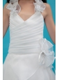 White A-line Halter Flower Girl Dress Organza Ruch and Hand Made Flowers Floor-length