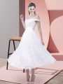 Home >  Prom Dresses >  Popular Prom Dresses > White A-line Lace Strapless Sleeveless Belt Tea Length Criss Cross Homecoming Dress