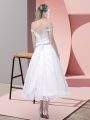 White A-line Lace Strapless Sleeveless Belt Tea Length Criss Cross Homecoming Dress