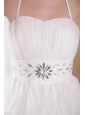 Home >  Prom Dresses >  Discount Prom Dresses > White A-Line / Princess Halter Brush Train Taffeta and Organza Rhinestones Prom Dress