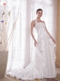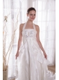 White A-Line / Princess Halter Brush Ttrain Taffeta Rhinestones Prom Dress