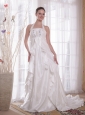 Home >  Prom Dresses >  Discount Prom Dresses > White A-Line / Princess Halter Brush Ttrain Taffeta Rhinestones Prom Dress