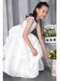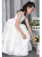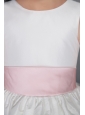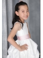 Do you still searching for an amazing flower girl dress for your little girl? This romantic white taffeta flower girl dress is your best choice! Decorated by a cute pink sash, this empire waist flower girl dress gives girls a feeling of gentle and romance. The A-line short skirt is made in a lovely ruched fashion.Wearing this you look like a fairy coming from fantastic fairy tale. Exquisitely designed, delicate and grace make every girl become the most sweet and gorgeous eye-catching in the wedding and other special occasion.