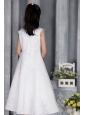 Do you still searching for an amazing flower girl dress for your little girl? This lovely white dress features a scoop neck bodice and lovely A-line waist is your best choice! Exquisitely designed embroidery on the neckline and the Tea-length skirt makes the girl the focus in every occasion.
