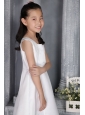 Home >  Flower Girl Dresses > White A-line / Princess Square Ankle-length Satin Embroidery Flower Girl Dress