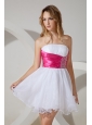 White A-line / Princess Strapless Beading Short Prom / Homecoming Dress Mini-length Organza