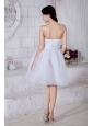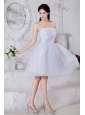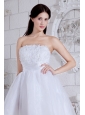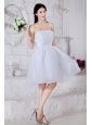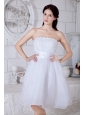 White A-line / Princess Strapless Short Prom Dress Organza Appliques Mini-length