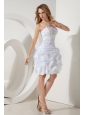 White A-line / Princess Straps Beading Short Prom / Homecoming Dress Mini-length Taffeta