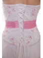 A gorgeous prom dress is stunning at your any prom. The beautiful strapless bodice adorned with floral embellishements throughout features a sweet heart neckline and a cross-over ruching band under the bust. The soft skirt accented with according shimmering beads gives you a flowy look. A lace up completes the wonderful design.