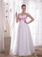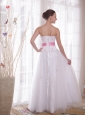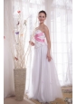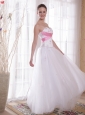 White A-Line / Princess Sweetheart Floor-length Tulle and Taffeta Beading and Rhinestones Prom / Evening Dress