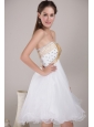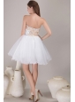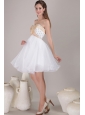 White A-line / Princess Sweetheart Knee-length Organza Beading Prom Dress