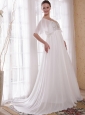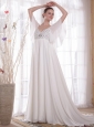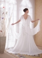 Home >  Special Occasion Dresses >  Mother of the Bride Dresses > White A-Line / Princess V-neck Court Train Chiffon Beading Mother Of The Bride Dress