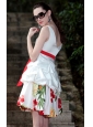 Home >  Prom Dresses >  Short Prom Dresses > White A-Line / Princess V-neck Mini-length Taffeta and Print Beading Prom / Graduation Dress